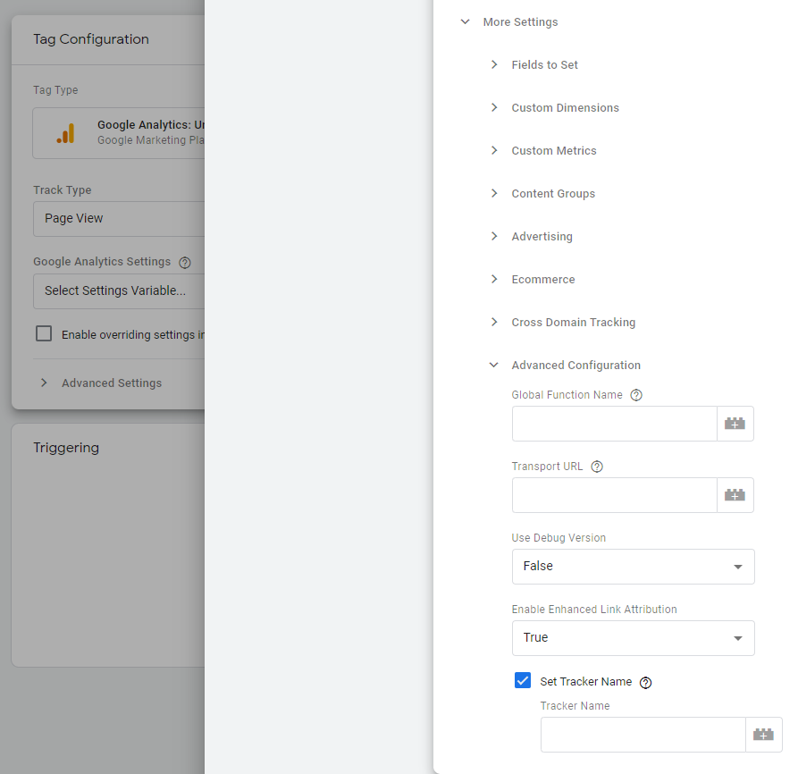 - Expand “More settings” → “Advanced Configuration” and tick the “Set Tracker Name” option leaving the “Tracker Name” field blank.